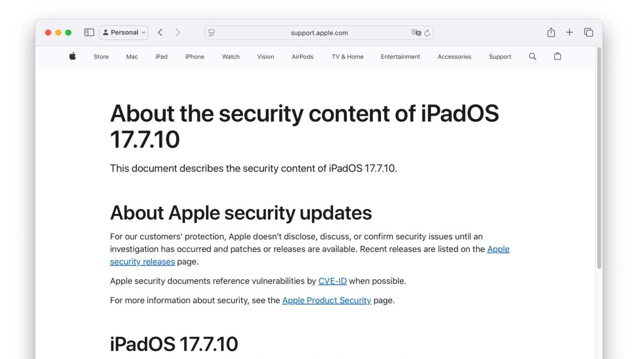 Appleが古いiPad ProやiPad (第6世代)にゼロデイ脆弱性を修正した「iPadOS 17.7.10」をリリースしています。詳細は以下から。