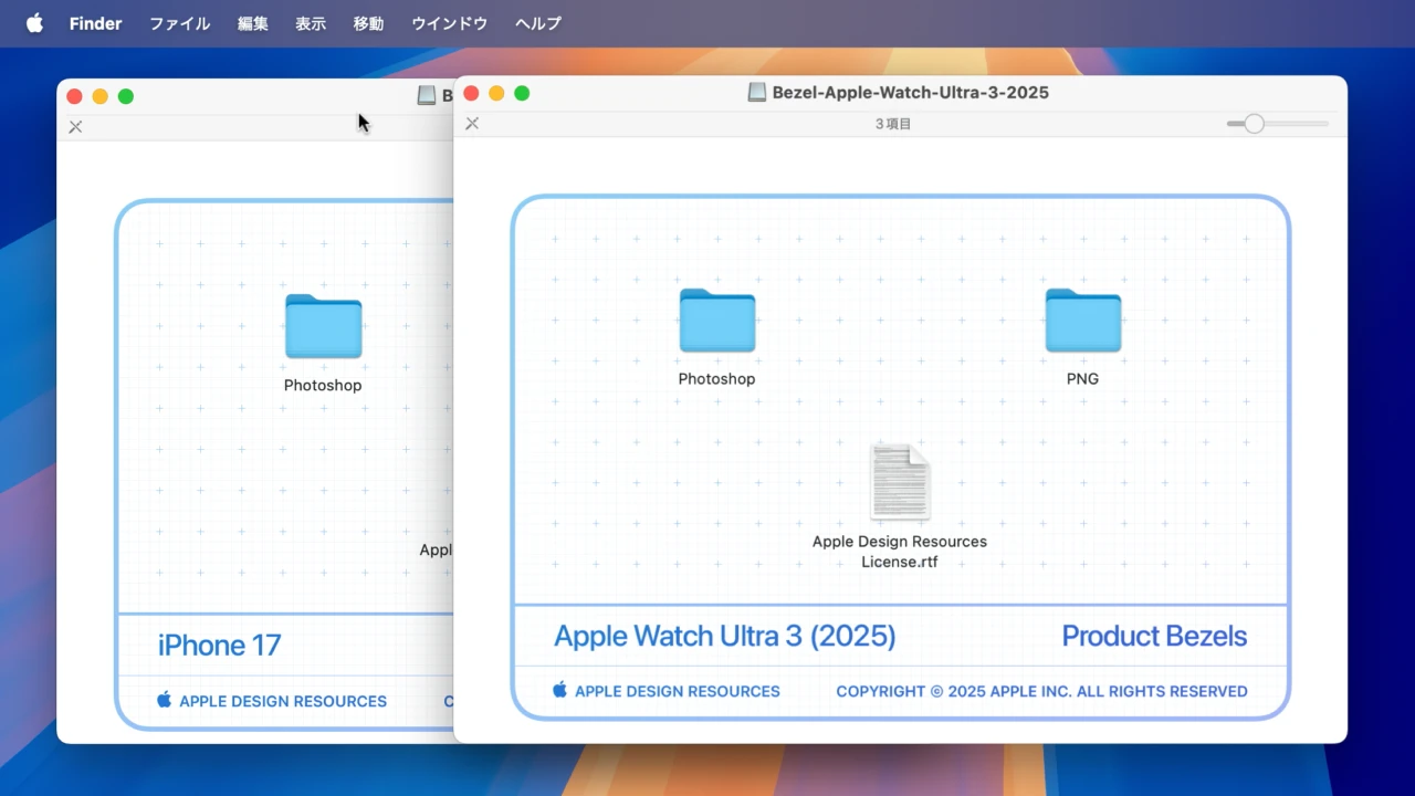 Appleが開発者やデザイナー向けに新たに発売される「iPhone 17/Air/Pro」や「Apple Watch Ultra 3」、「Apple Watch Series 11」のベゼルモックアップをPhotoshopとPNG形式で公開しています。詳細は以下から。