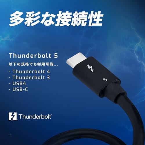 最大データ転送速度80Gbps、ディスプレイ帯域幅120Gbps、240W PDに対応したThunderbolt 5ケーブル。0.5mタイプもセール中。