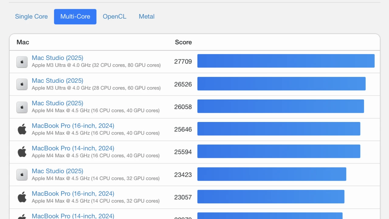 Primate LabsがApple M3 Ultraチップを搭載したMac Studio (2025)のGeekbench CPU/GPUスコアの掲載を開始しています。詳細は以下から。