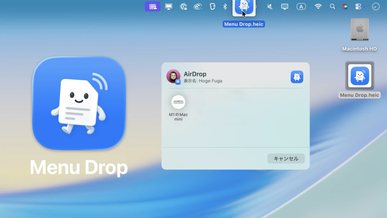 メニューバーアイコンにファイルをドラッグ&ドロップするだけでAirDrop機能を呼び出してくれるMacアプリ「Menu Drop」がリリースされています。詳細は以下から。