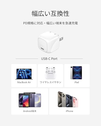 iPhone 17を20分で約50%まで充電できる1ポートUSB-C急速充電器。USB-Cケーブル付き。