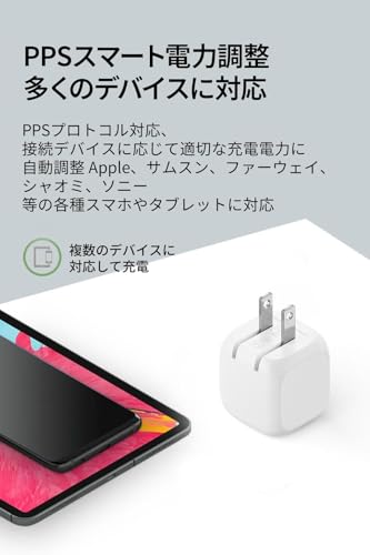 iPhoneを約30分で50%まで充電できる30W出力のキューブ型USB-C充電器。