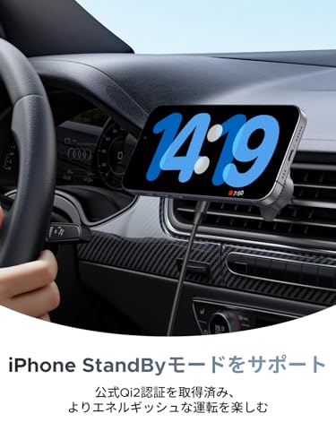エアコン口に取り付けできる、Qi2 25Wワイヤレス充電対応の車載ワイヤレス充電器。