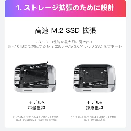 USB-Aや2.5GbE、SDカードリーダーに加えNVMe SSDを搭載可能なMac mini用Thunderbolt 5ドック。SSDを1基搭載可能なModel Bが10%OFFセール中。