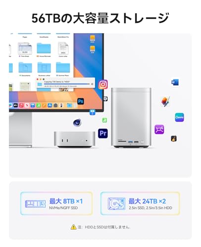 USB-AやSD/microSDカードリーダーに加え、NVMe SSDスロットを備えたMac mini用ドック。