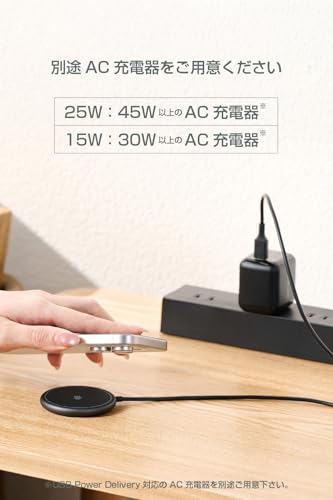 日本メーカーとしては初めてQi2 25Wワイヤレス認証を取得(QI-25343)したW-MA12ワイヤレス充電器と同じ25Wワイヤレス充電対応の充電器。タイムセールは初。