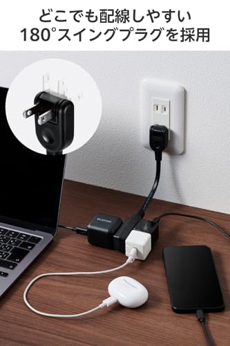 利用シーンに合わせ形状を変更できる7個口の可動式電源タップ。