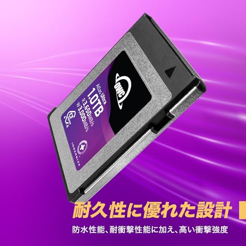 最大書き込み速度3,000MB/s、読み取り速度3,650MB/sとなるCFexpress 4.0 Type B メモリーカード。