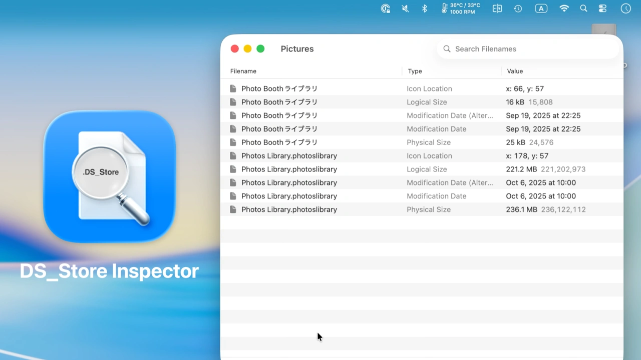 .DS_Store内の情報を確認するのが難しくなっていますが、この.DS_Storeファイル内に保存されたメタデータの情報をプレビューできるMacアプリ「DS_Store Inspector」が新たにリリースされています。