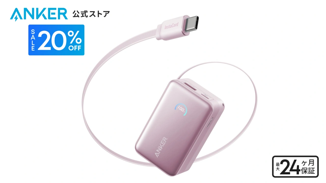 Anker Japanが巻取り式USB-Cケーブルを内蔵したモバイルバッテリー「Anker Nano Power Bank (10000mAh, 45W, 巻取り式 USB-Cケーブル)」のピンクモデルを発売しています。詳細は以下から。