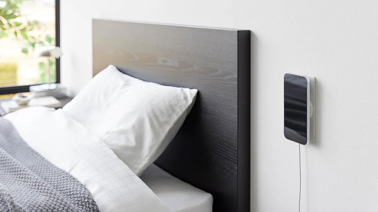 スマートフォン充電ホルダーはApple純正のワイヤレス充電器「MagSafe充電器 (25W型番A2580・A3250と15W型番A2140)」を取り付けられるホルダーで、MagSafe充電器を保護カバーに入れて壁に取り付けられるホルダーで、