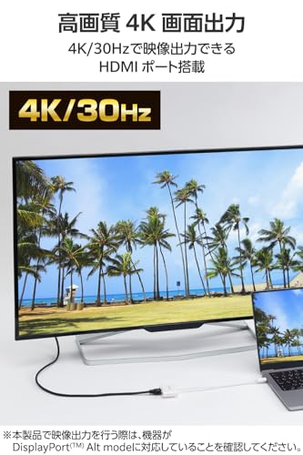 USB-PD x1とUSB-A (5Gbps) x1、USB-A (480Mbps) x2、4K@30Hz出力対応のHDMIポートを搭載したUSB-Cハブ。