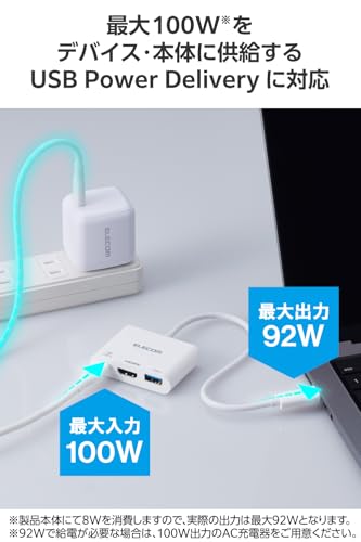 USB-PDポートとUSB-A (5Gbps) x1、USB-A (5Gbps) x2、4K@30Hz対応のHDMIポートを備えたUSB-Cハブ。