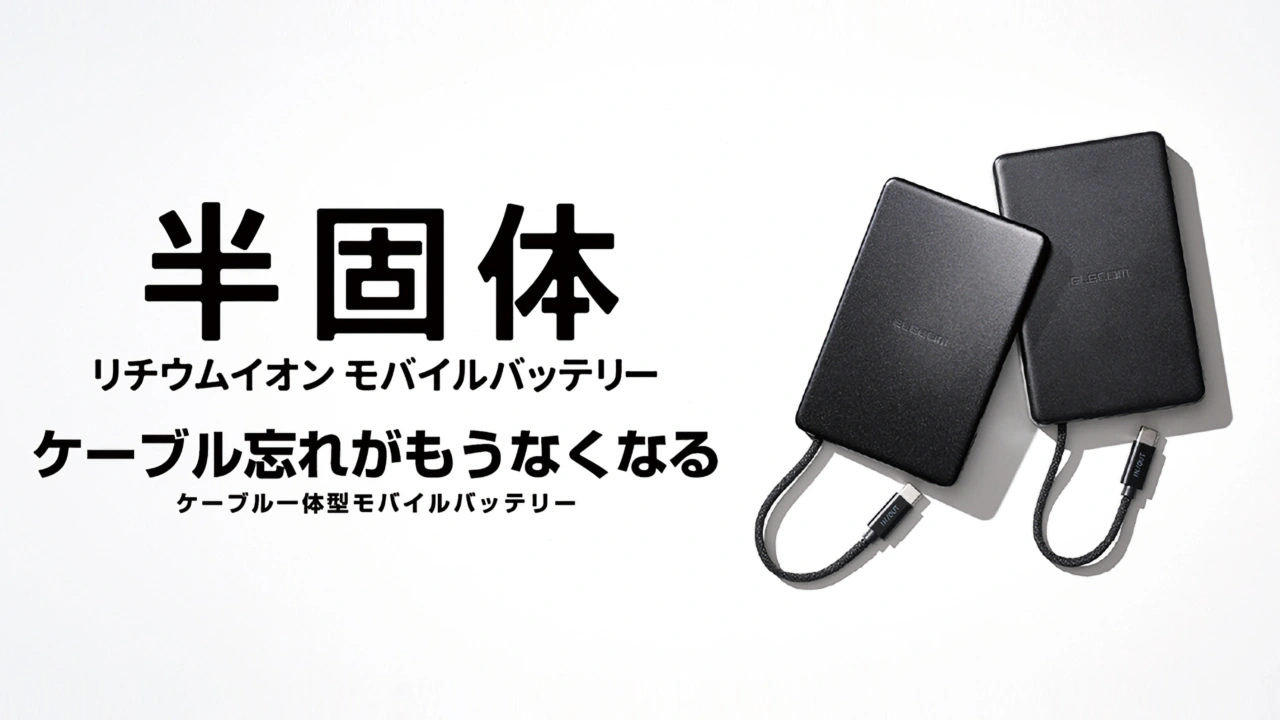 エレコムが半固体リチウムイオン電池を採用したモバイルバッテリーの第2弾として「ケーブル一体型 半固体モバイルバッテリー」2機種を発売するそうです。詳細は以下から。