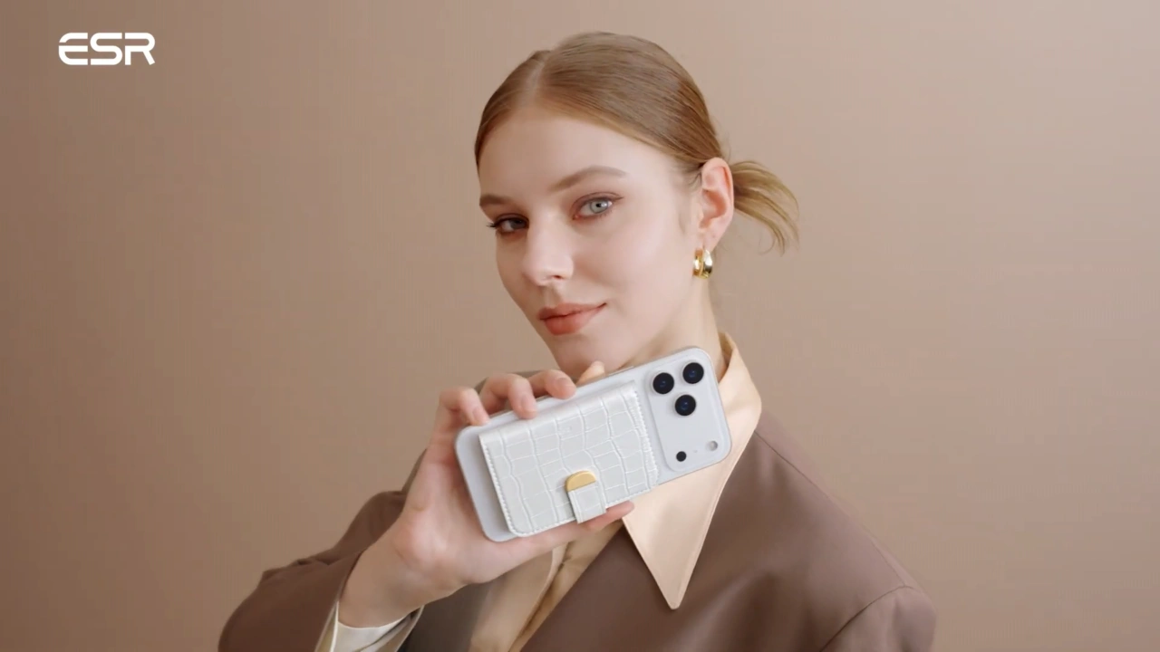 iPhoneケースなどを販売する中国のサードパーティメーカーESRは2024年06月、クラウドファンディングサイトKickstarterにおいて、世界初となるAppleの探す機能を内蔵した二つ折り財布「ESR Geo Wallet Built-in Find My」を発表し、その後MagSafe対応ウォレットを発売していましたが、ESRは新たに高級感のあるヴィーガンレザーを採用した女性向けデザインのウォレット兼スタンド「ESR Aura Clutch Magnetic Wallet (2K620)」を発売しています。