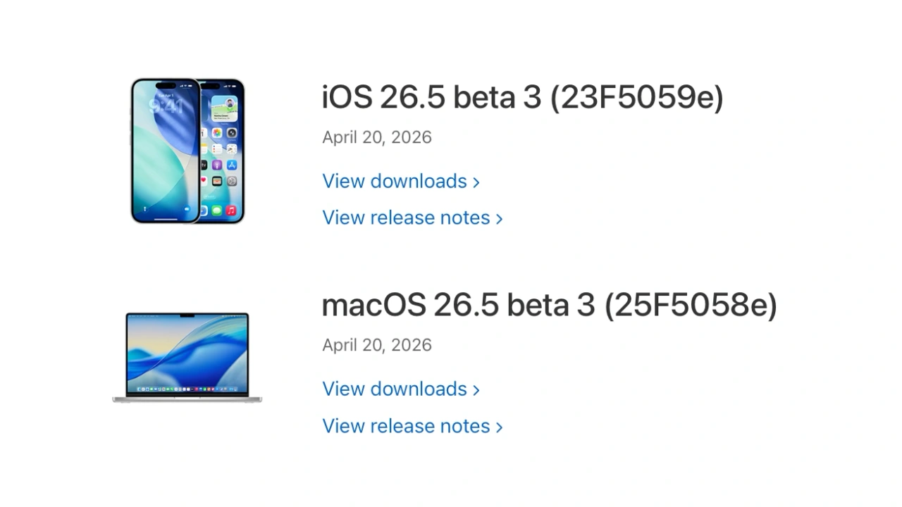 Appleは現地時間2026年04月20日、開発者向けに次期「macOS 26.5 Tahoe」や「iOS/iPadOS 26.5」、「watchOS 26.5」、「visionOS 26.5」などのBeta 3を公開しています。