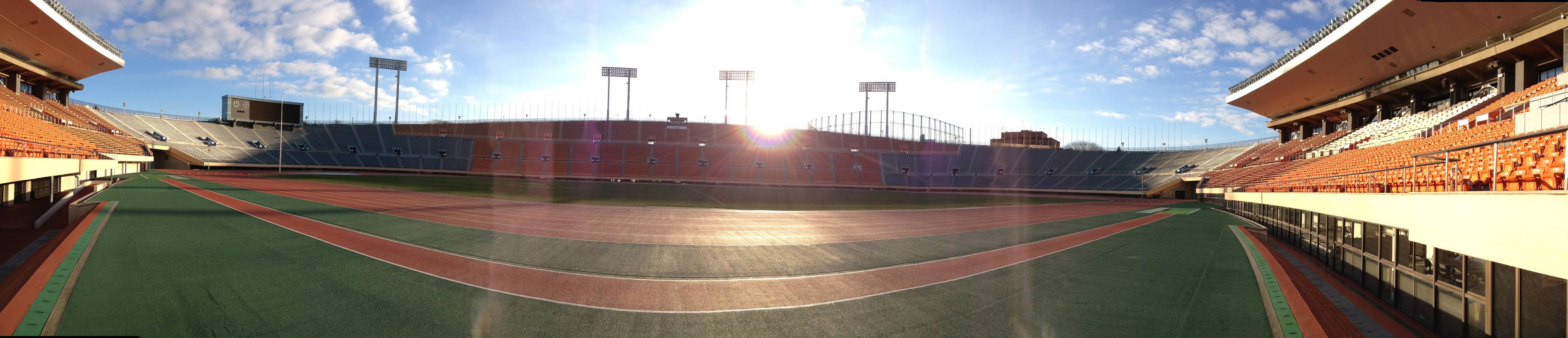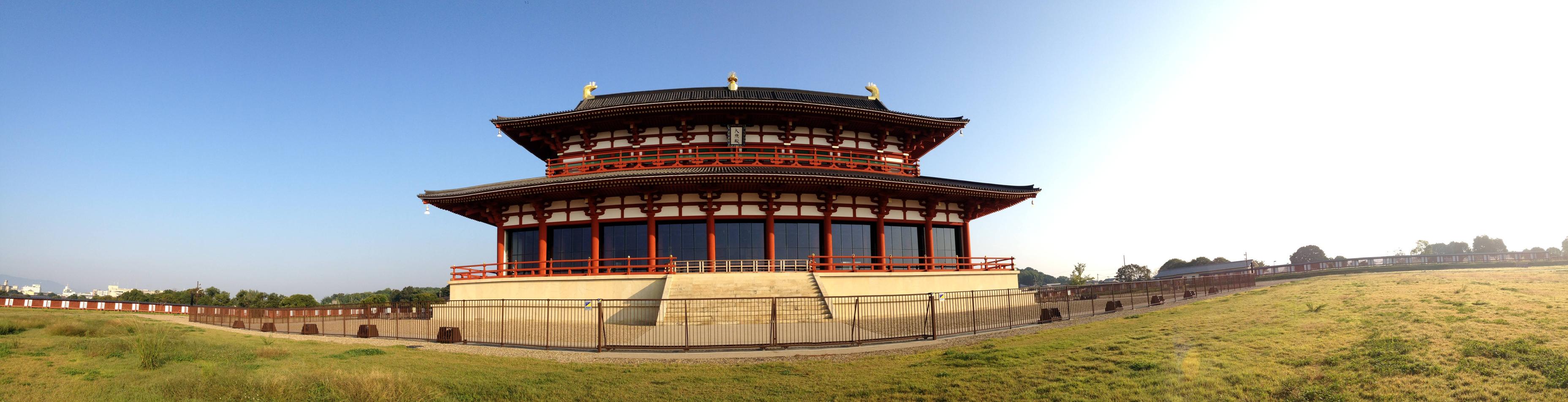 山と競馬場と大極殿のパノラマ写真は綺麗だな~