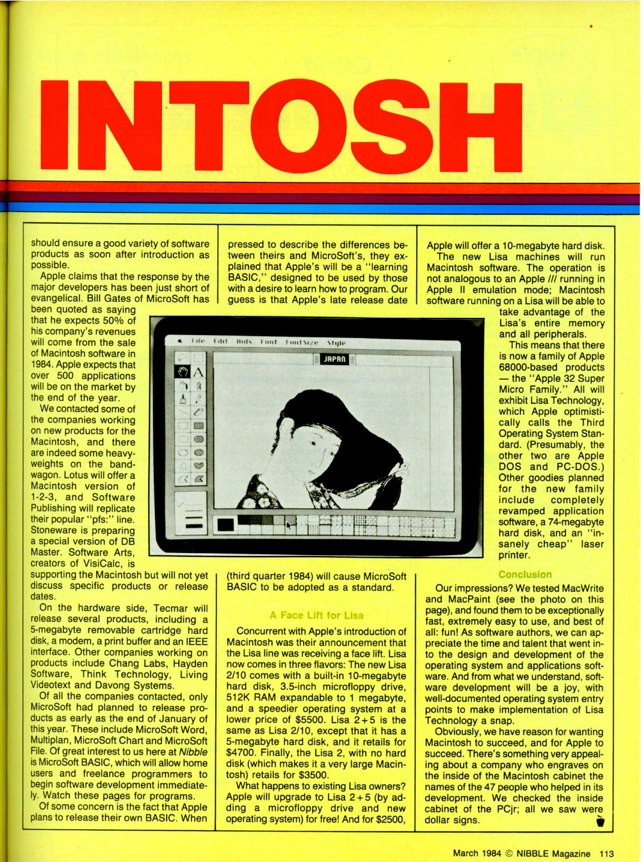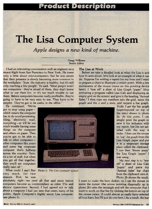 まずはByte誌1983年2月号のLisaプレビュー記事から。