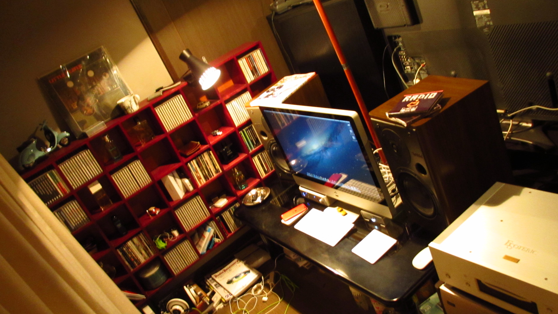 例えば、机の下に安いクリップライト数個入れて間接照明にしても面白いと思う。