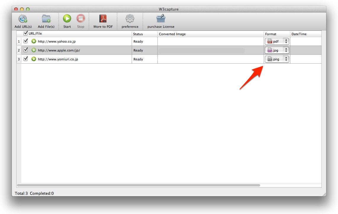 W3caputreはリスト化したホームページの全画面キャプチャーを撮れるアプリです。