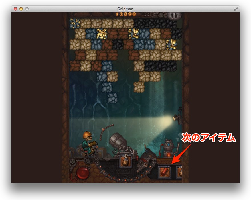 GoldMan HDは炭鉱マンが上から落ちてくる岩盤を撃って崩落を回避していくバブルシューター風ゲームです。