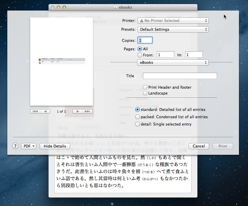 データベースに登録した本は一覧にしてプリントアウトもできます。