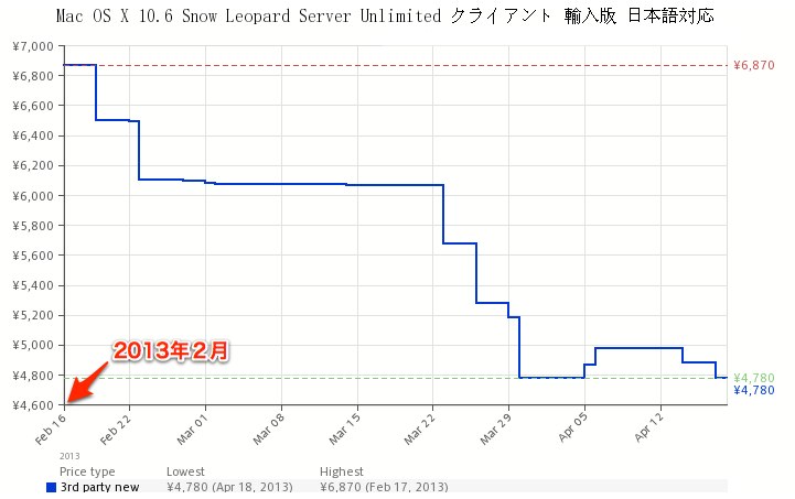 今年に入ってSnow Leopard Serverの価格が続落