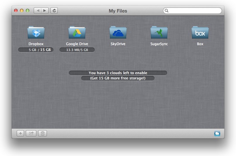 My Filesは5つのクラウドストレージ(Dropbox、Google Drive、SkyDrive、SugarSync、Box)を管理できるアプリです。
