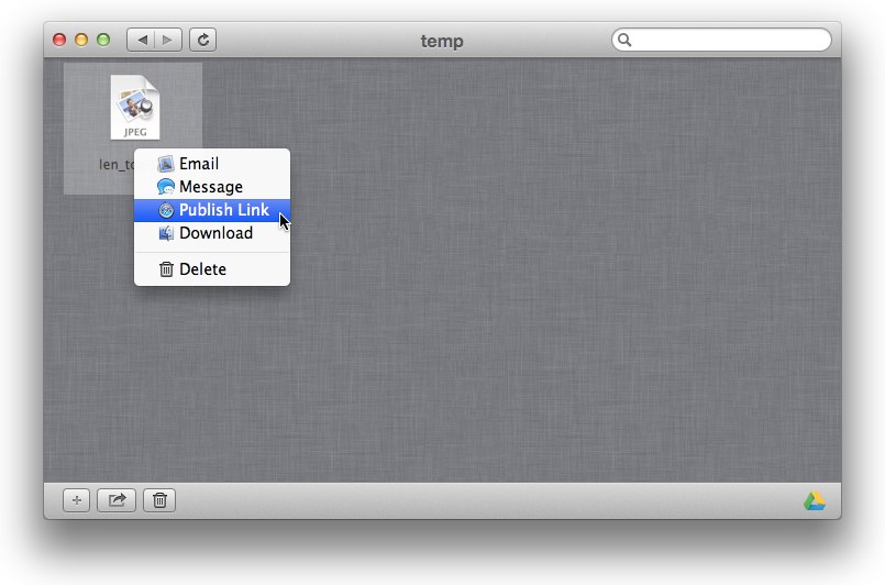 ファイルの追加、ダウンロードとシェア(Email,Message,Publish Link)が可能です。