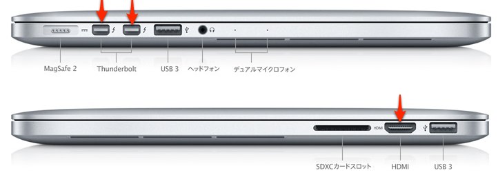 *MacBook Pro with Retina Display 15インチモデルにはHDMIと2つのThunderboltポートがあるため。
