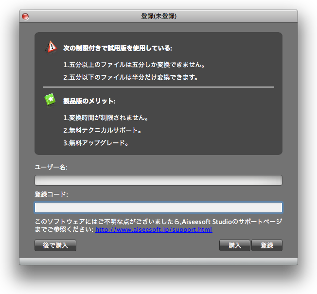 メールアドレスにRegister Codeとダウンロードリンクが送られて来るので、アプリをインストール、起動しRegistすれば制限なく使えます。