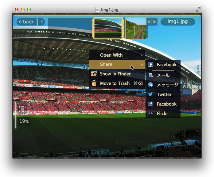 その他にも右クリックでShare、Preferenceでマウスのホイール動作、拡張子の関連づけなどができます。