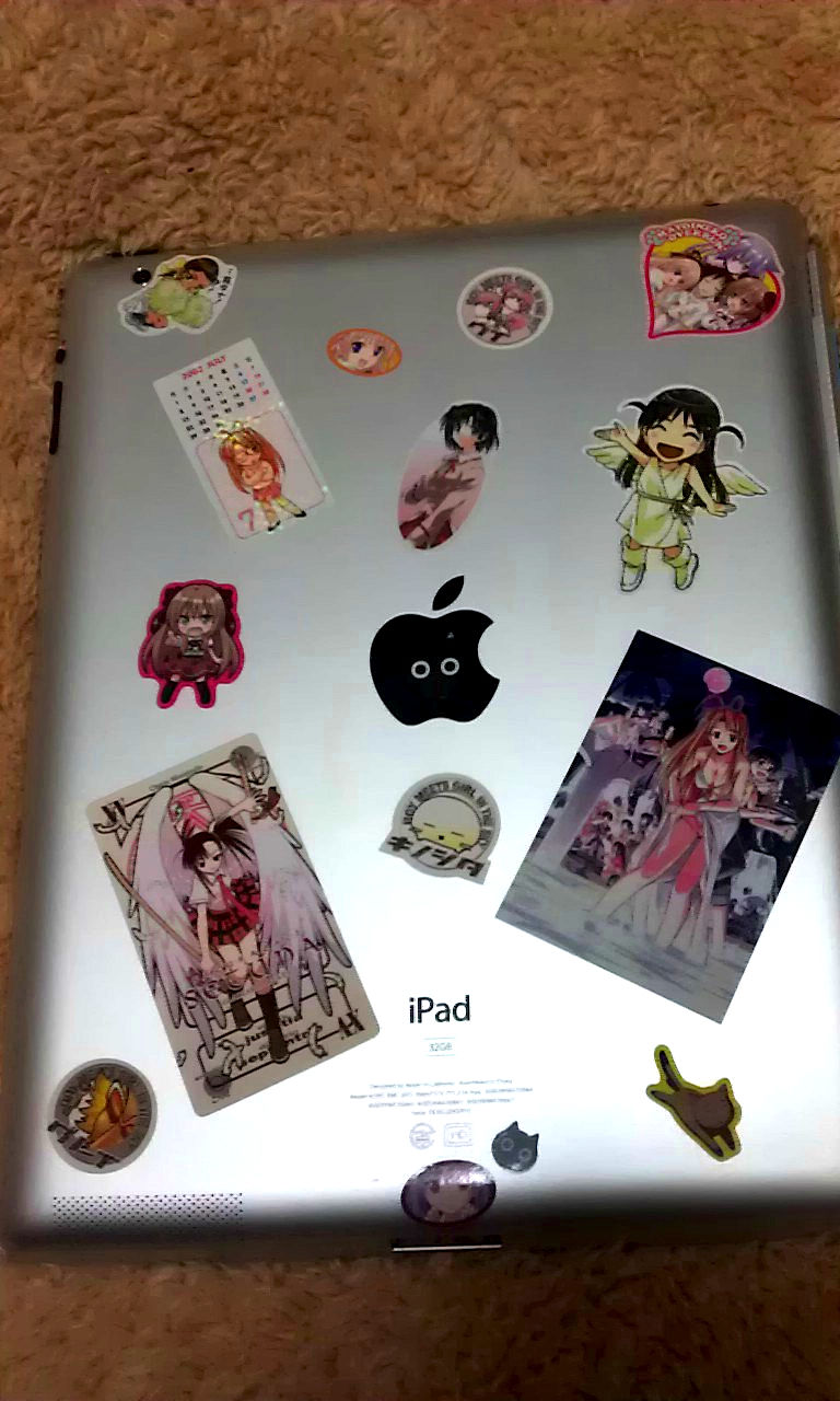 表は自作のシール張って、裏は自炊した漫画の付録シールをペタ張りした痛Pad