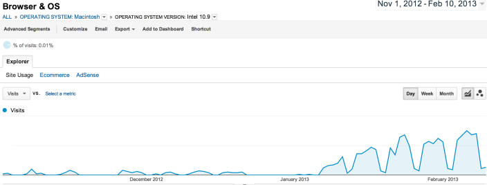 着実に増えているネット上のOS X 10.9トラフィック