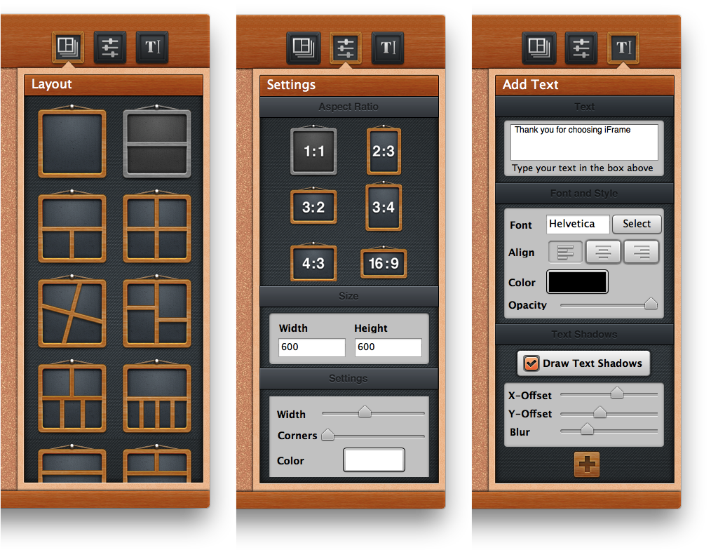 iFrameは33のフレーム、100以上のオプションを選択できる写真のレイアウトアプリです。
