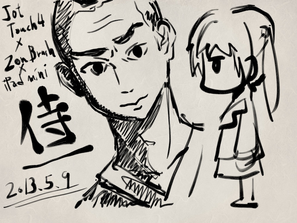 Jot Pro状態で描いてみたところ、iPad miniでフィルム越しでも反応は良好です。
