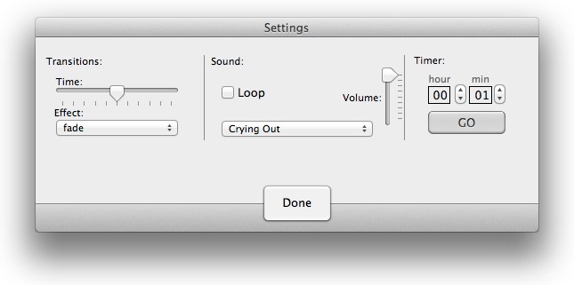 メニューバーの[Tools]→[Settings]からは終了タイマーやサウンドのループなどが設定可能です。