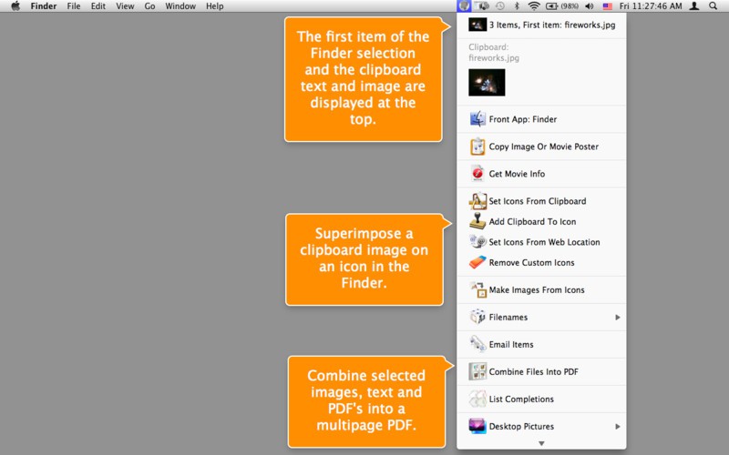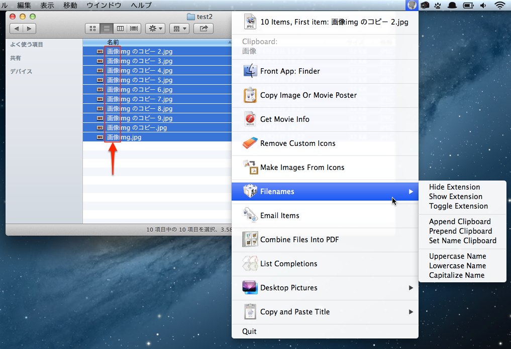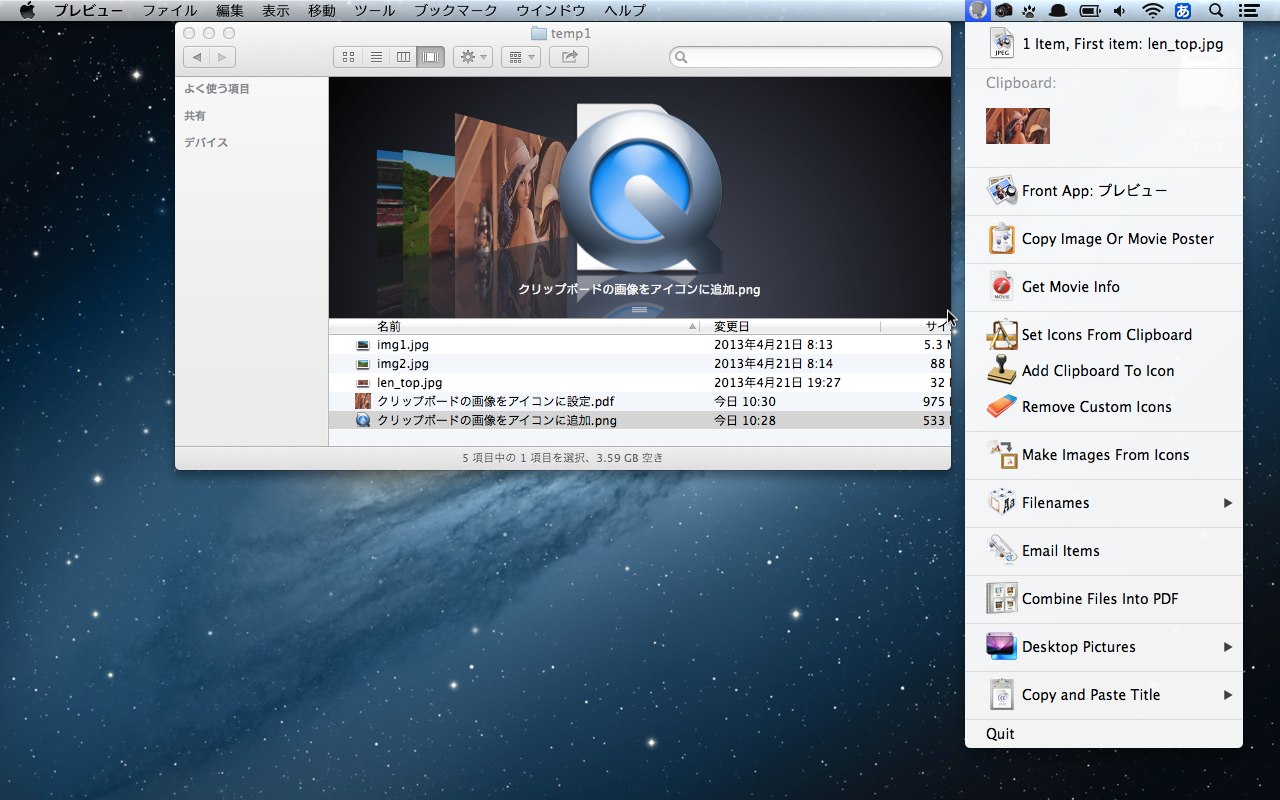 具体的にはFinderのファイルアイコンにアイコンを重ねたり