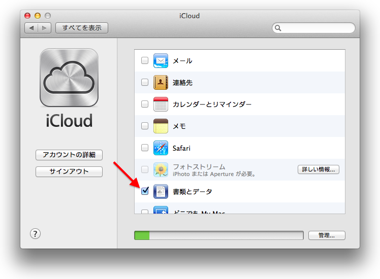 iCloudで同期する場合、Mac版はこのアプリで複数のMacと同期可能ですが、iOS版の有料アプリが必要となります。iCloudの設定は、システム環境設定からiCloudへと進み書類とデータを同期にチェックすれば設定完了です。