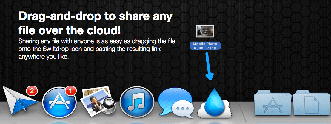 Swiftdropはアプリアイコンにファイルをドラッグ&ドロップするだけでファイルを圧縮、DropboxかGoogle Driveへアップロード、パブリックURLを表示してくれるクラウドファイル共有アプリです。