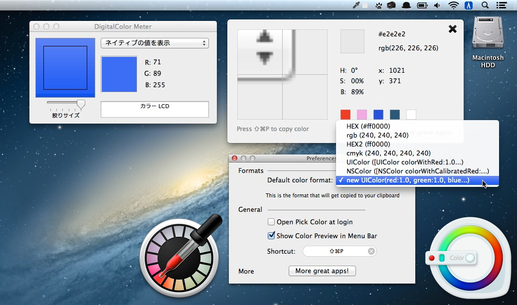 Macデフォルトのデジタルカラーメーター「DigitalColor Meter」と比べると