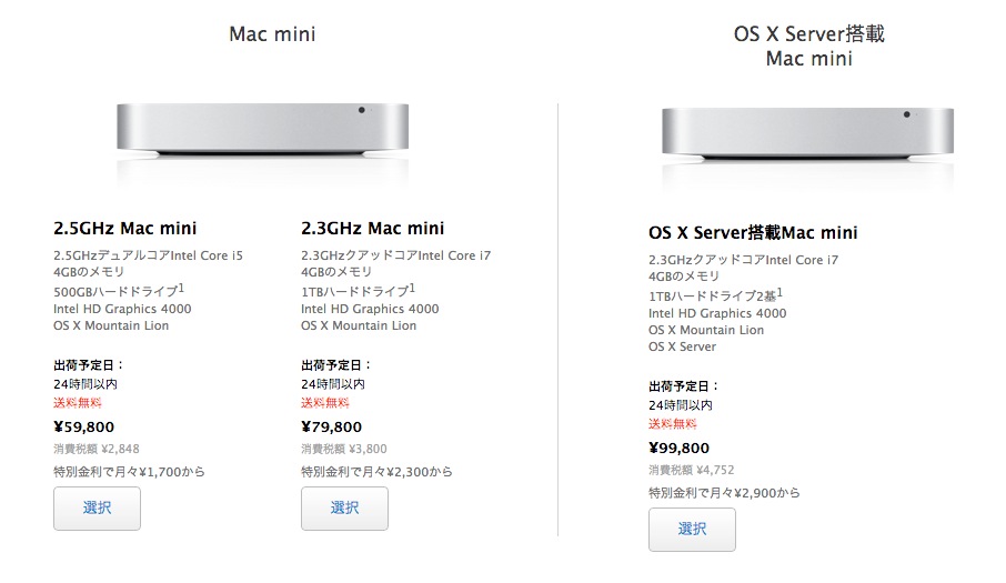 ・Mac mini サーバー モデル:88,800円→99,800円へ(+11,000円)