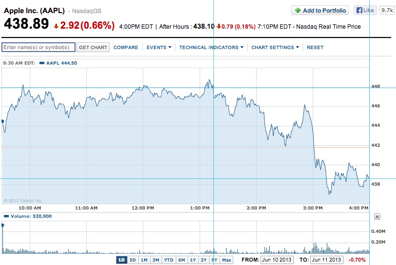 WWDC発表前のAPPLE株は現在(日本時間1時20分)448$。