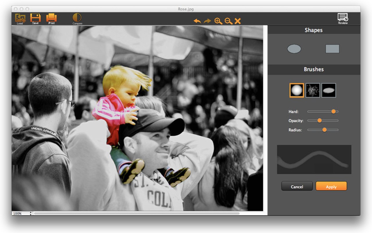 使い方はアプリを起動して写真を選択、かけたいエフェクトを下から選び、次に右の[Edit Splash Effect]ボタンを押しエフェクトを外したい(Splash Effectsをかけたい)部分を塗りつぶします。