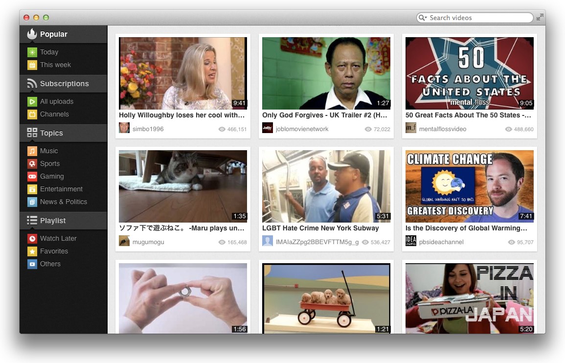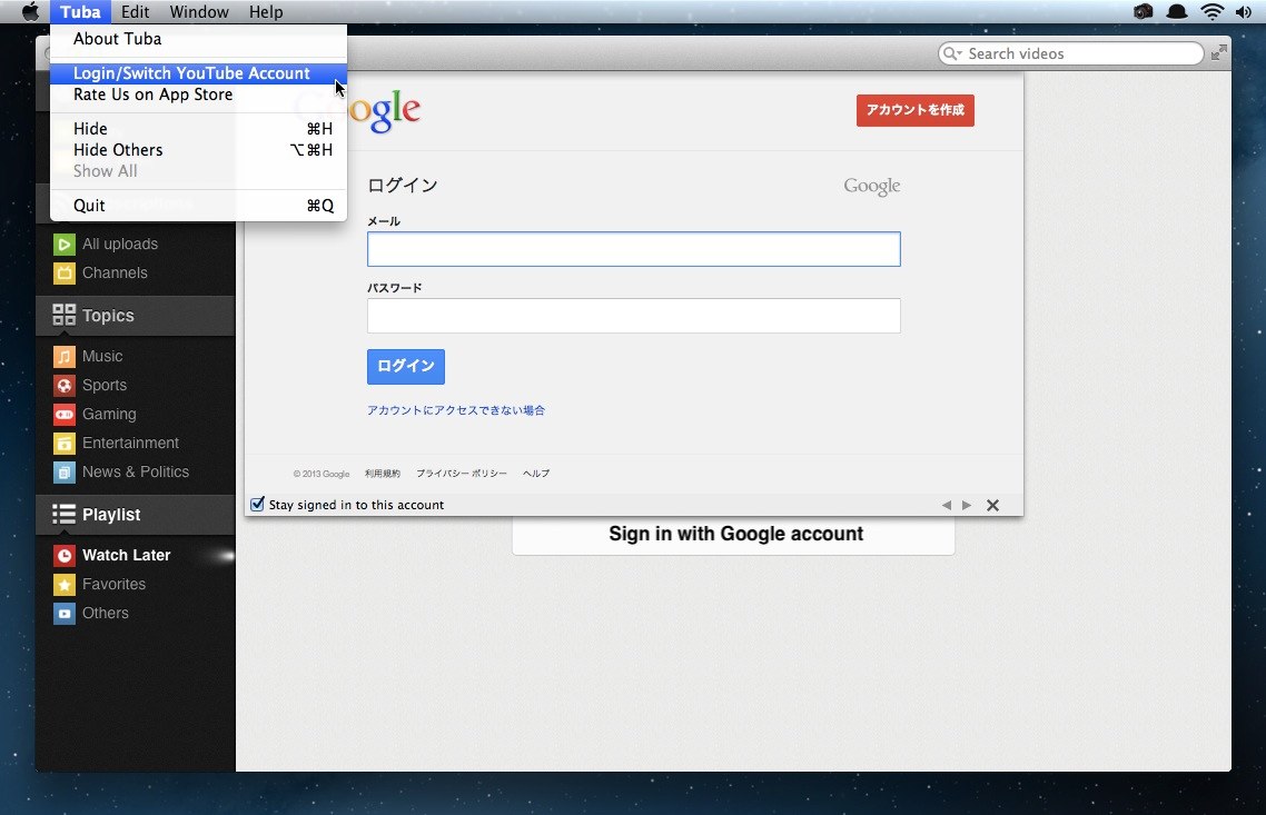 RetinaDisplayにも対応し、YouTubeアカウント(Googleアカウント)でログインすることでチャンネルやお気に入りの管理などもできます。