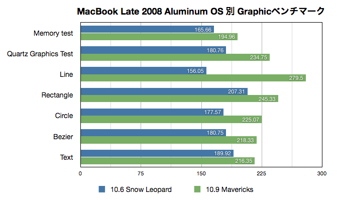 メモリスコアが違うので正確ではありませんが、MavericksではOpenGLのスコアが上昇しているとの情報があるので、古いMacでも恩恵があるかもしれません。