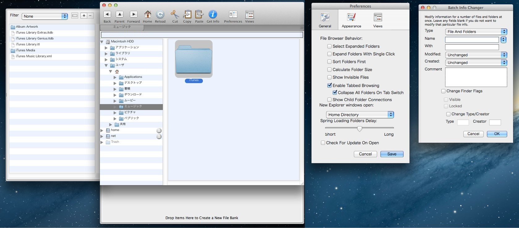 機能としてはファイルネームのバッチ処理やタブブラウズ等が可能です。