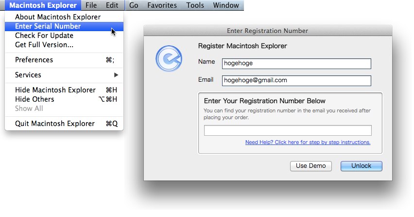 RegistしなくてもDemo版として使用できますが、Registする場合はメニューから[Enter Serial Number]でRegist出来ます。