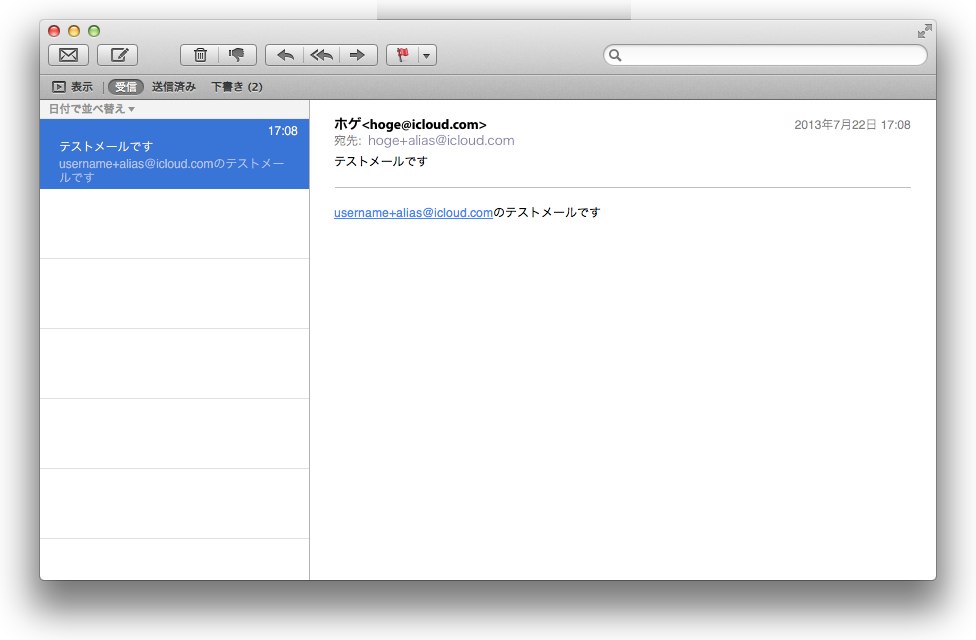 受信のみ可能なuser+hoge@icloud.comアドレス